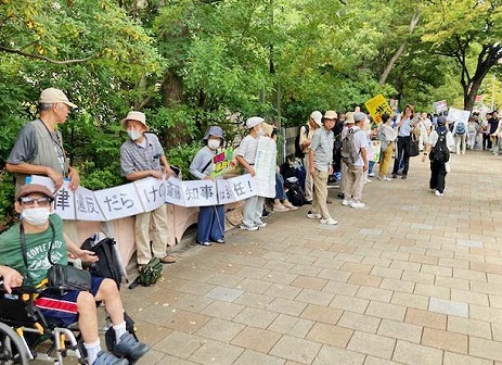 | 日米軍事演習レぞリュート・ドラゴン25繁体東京・大阪・全国で行動(写真は9月15日大阪駅前 3面記事参照) |
