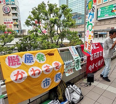 9月14日、川崎市内駅頭での署名行動に参加した。この日は、〈とめよう! 東海第二原発首都圏連絡会〉が呼びかけた「東海第二原発いらない! 一斉行動第17波」として、首都圏で約50団体が参加しての行動の一環だった。