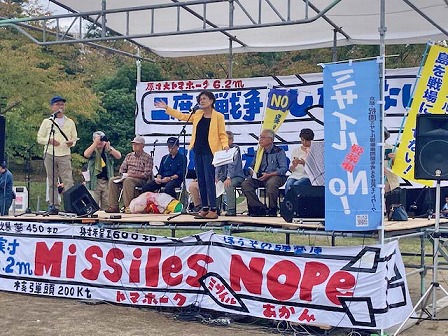 10月19日、長射程ミサイルの配備に反対する全国集会が精華町「けいはんな記念公園」でおこなわれた。集会名称は「私たちは二度と戦争をしたくない! 平和でこそ文化は香り立つ! 祝園全国集会」で、主催は同実行委員会。この集会に2700人が参加した。
