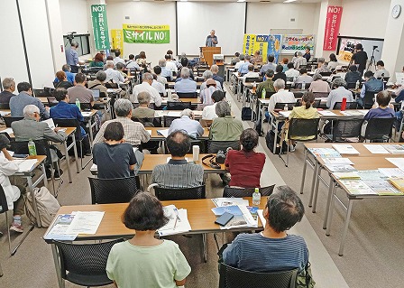 具志堅隆松さん(沖縄戦遺骨収集ボランティア「ガマフヤー」)が、まとめの提起をおこなった。つづいて、10月20日からおこなわれる自衛隊統合演習に反対する「緊急アピール」が提起され、全体で承認された。最後に、集会宣言が読みあげられ、〈知り、つながり、行動する〉ことを確認した。