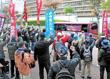 | 大阪地裁前で決起集会(11月18日 大阪市) |