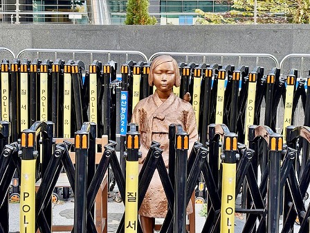 | 柵で囲まれた「平和の少女像」(11月5日 ソウル) |