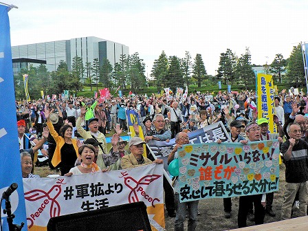 | 「ミサイルいらない!軍拡より生活」をかかげ10・19祝園現地闘争に2700人が参加した(10月19日 京都府精華町) |